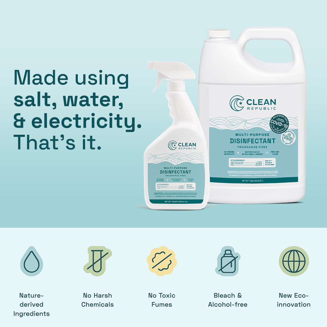 ALL NATURAL INGREDIENTS – This natural disinfecting spray is made with just salt, water, and electricity, with no preservatives, fragrances, or synthetic chemicals
